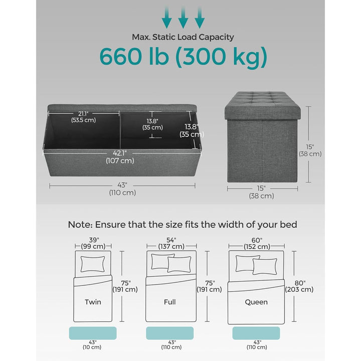 Pad tárolóhellyel, ülőgarnitúra, tárolódoboz, összecsukható, max. statikus teherbírás 300 kg, fém elválasztóval, 120 L, 110 x 38 x 38 cm, vászonutánzat, sötétszürke [Extra stabil] Ez...